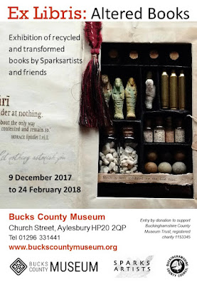 Unable to resist making two altered books for the still current 'Ex Libris' exhibition, Christine rescued a falling-apart paperback in one book, and in the other hid a smaller book, also pressure-printed with assembled 'barricades'.